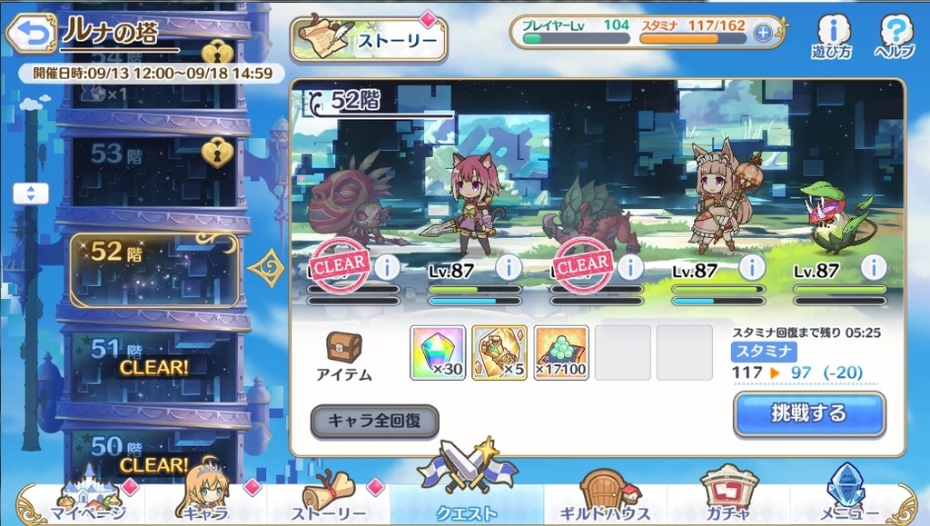 2018-09-20 プリコネR ルナの塔最終日 プリコネR ルナの塔 SS撮ってたのに書き忘れてた・・・ まぁ結局52階でフィニッシュ! タマキきついわー まぁ50階ボスはなんとか抜けたから良かった・・・ 次はもっと強くなっててやる!!